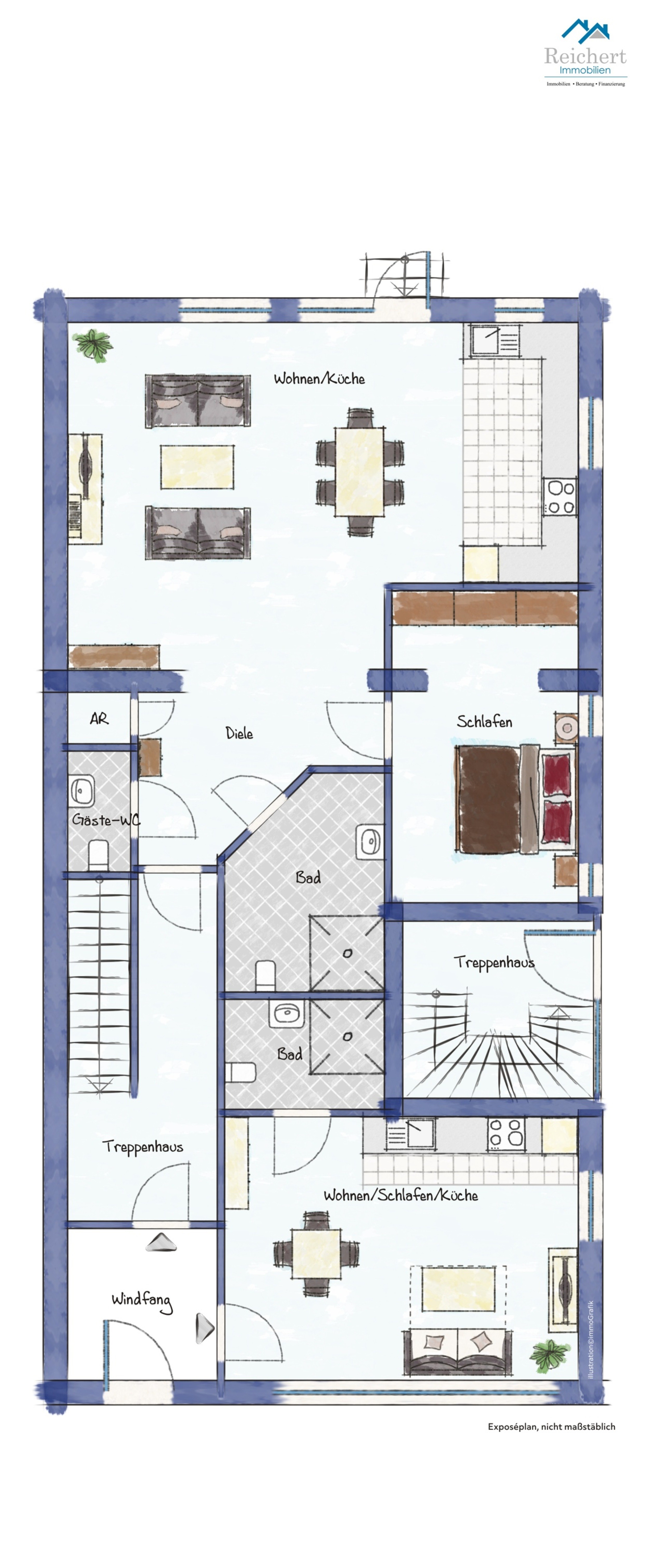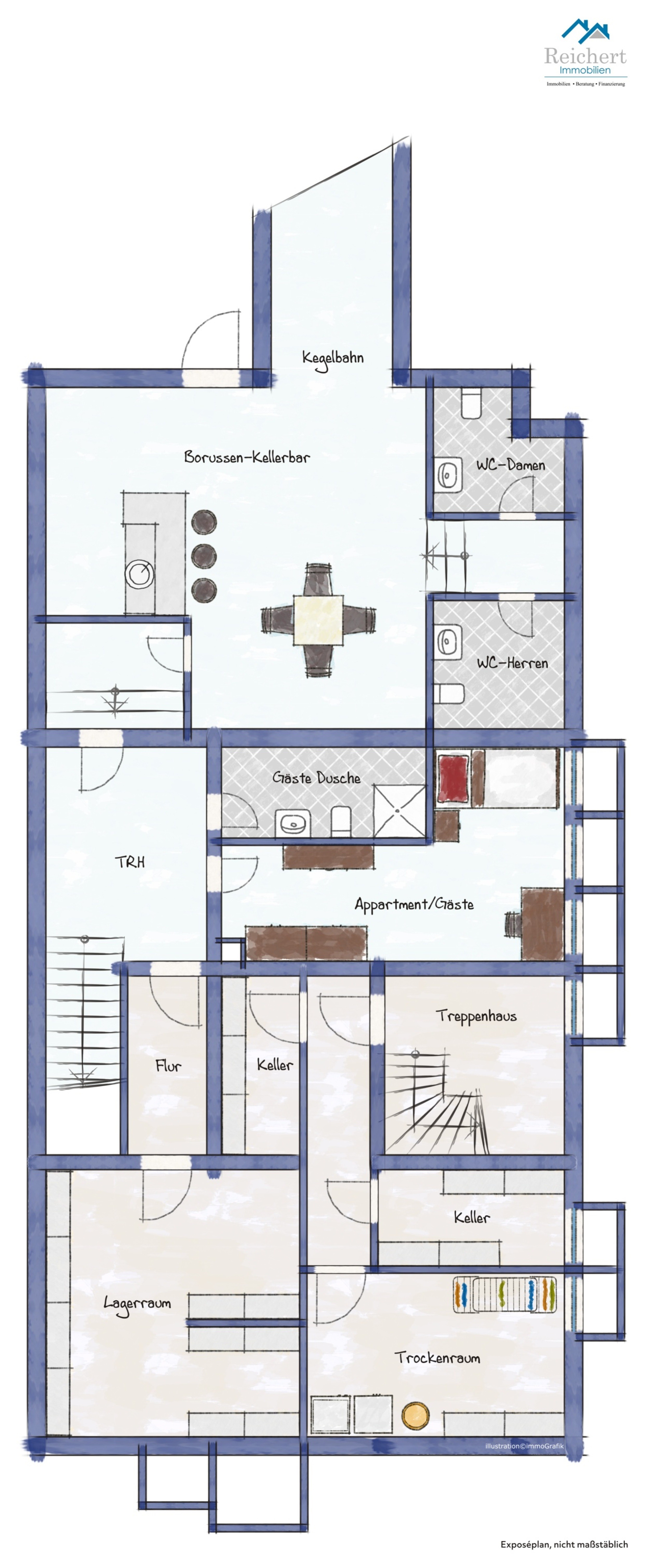 Die Angaben des Exposés sind soweit möglich geprüft. Für deren Richtigkeit wird jedoch grundsätzlich keine Haftung übernommen. Irrtümer und Zwischenvermietung der Liegenschaft bleiben vorbehalten.